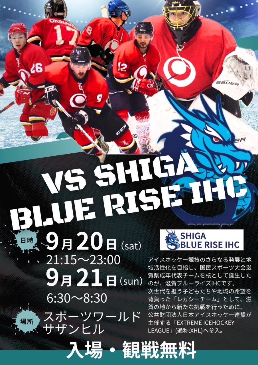 沖縄成年国体チームは、国民スポーツ大会に向けて日々強化を進めています。今回のチャレンジマッチでは、地域を代表する滋賀ブルーライズIHCを迎え、次世代を担う選手および子どもたち、そして地域の皆さんに「 氷上スポーツの楽しさ」「 チームの一体感」「 競技の面白さ」を体感していただきたいと思います!